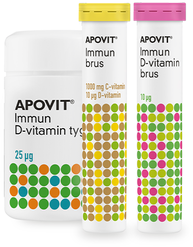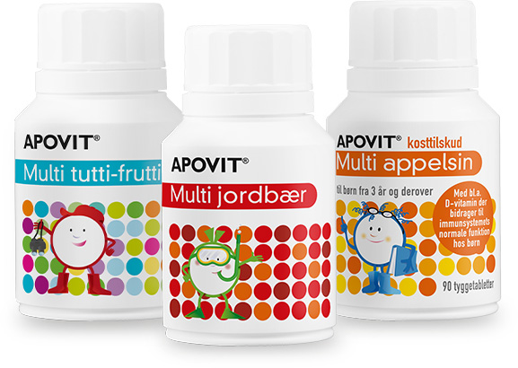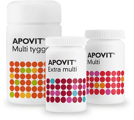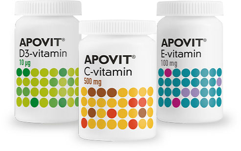 APOVIT® er en bred serie af kosttilskud i form af bl.a. forskellige multivitaminer udviklet specielt til børn, voksne, gravide og ældre. Derudover indeholder APOVIT® et stort udvalg af enkeltvitaminer og mineraler, herunder D-vitamin, C-vitamin, magnesium, zink og en hel serie med kalktilskud.