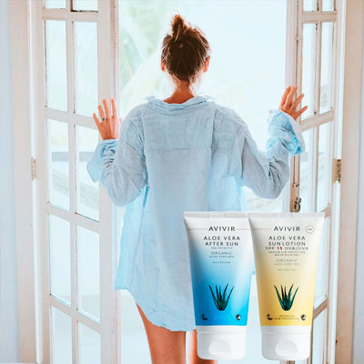 - Brug AVIVIR Aloe Vera Gel og Gel Spray, hvis du skulle blive solskoldet. Lindrer, køler og genopbygger huden effektivt.