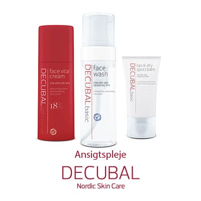 Decubal er hudpleje til tør og sensitiv hud, udviklet i Norden til nordiske forhold. Det kolde og tørre nordiske klima er hårdt ved huden, og mange oplever at deres hud er tør og sensitiv konstant, eller når årstiderne skifter. Hos Decubal finder du fugtgivende, intensivt plejende og allergivenlige produkter til krop og ansigt. Serien er udviklet i samarbejde med hudlæger til hele familien.