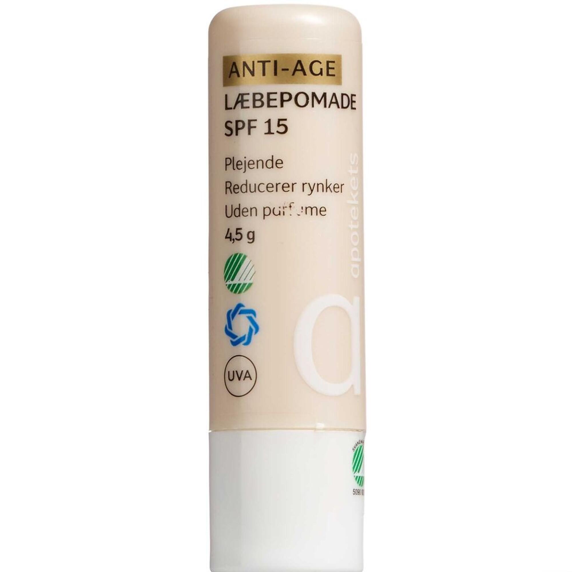 Køb Apotekets Anti-age Læbepomade SPF 15 4,5 g online på apotekeren.dk og få varen tilsendt direkte til dig.