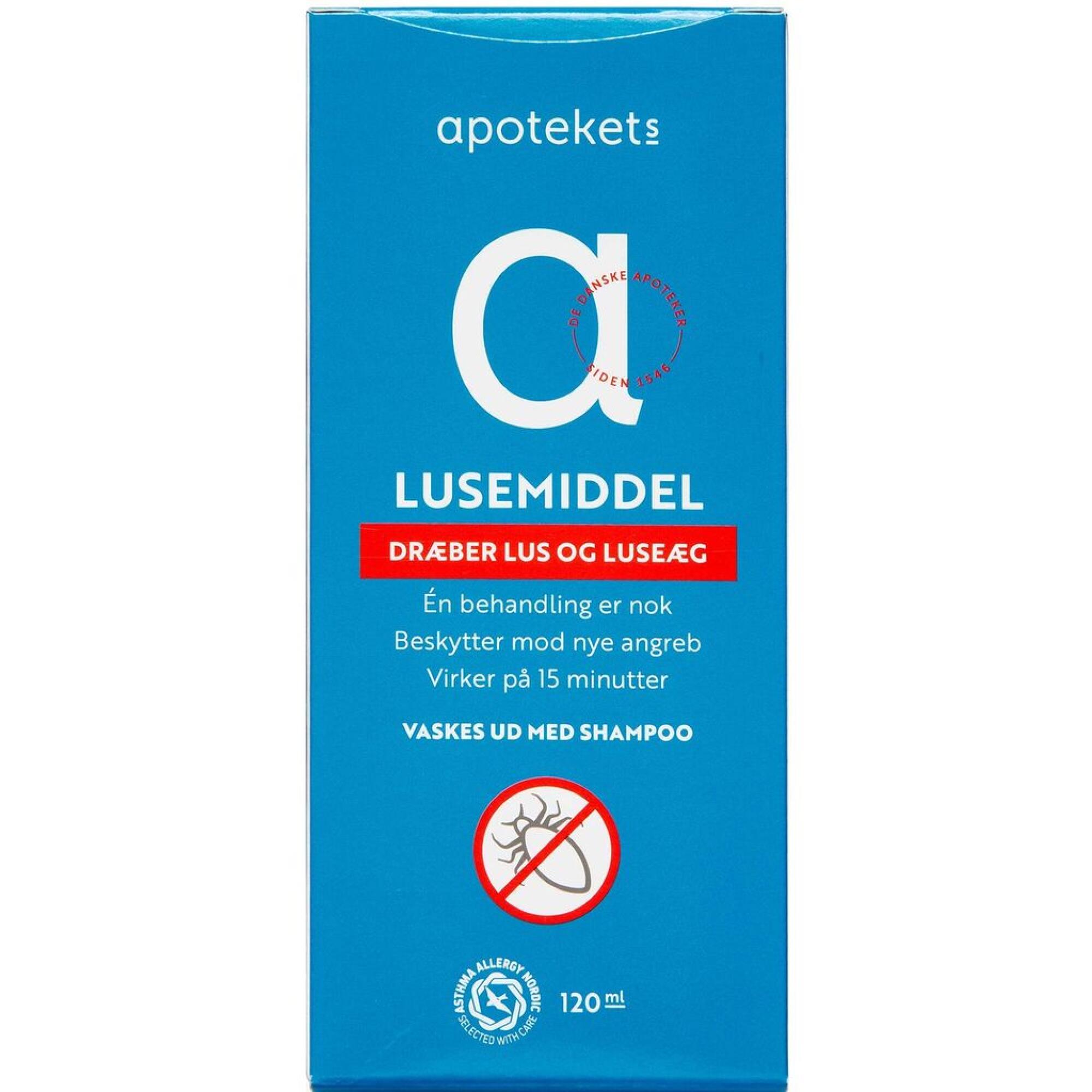 Apotekets Lusemiddel er en effektiv lusebehandling, der virker på 15 minutter mod både lus og luseæg. Apotekets Lusemiddel indeholder silikoneolie, som lægger sig uden på lusene og blokerer deres åndedrætssystem. Samtidig hindrer olien luseæggenes udvikling.