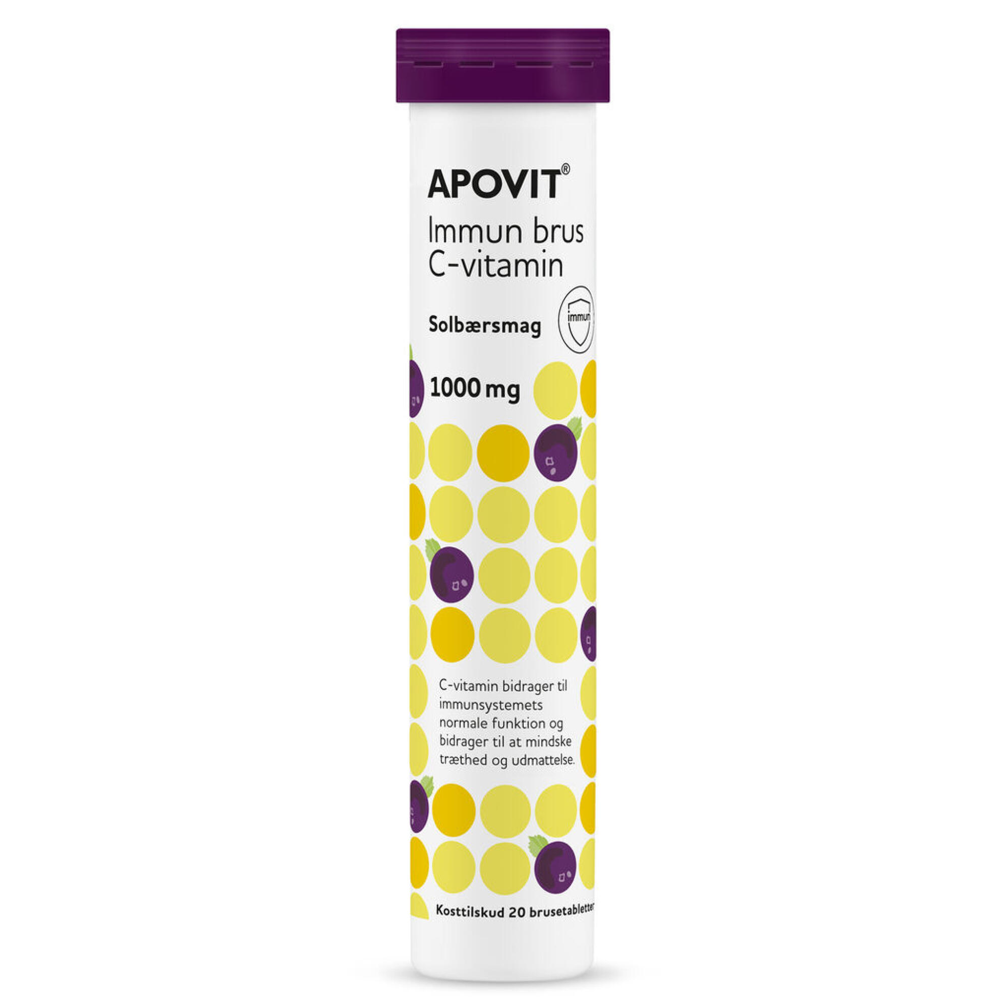 Køb APOVIT Immun C-vitamin brus, 1000 mg 20 stk. online på apotekeren.dk og få varen tilsendt direkte til dig.
