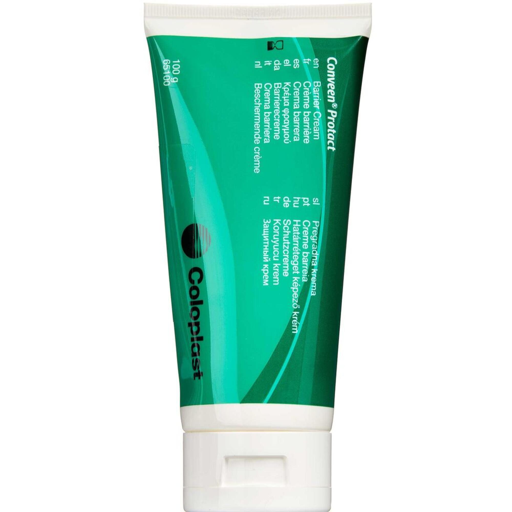 Conveen Protact Barriere Creme danner et beskyttende lag, så skadende sekreter holdes væk fra huden. Zinkoxiden beskytter også huden ved at danne en barriere og tilvejebringe et uforstyrret helingsmiljø. Conveen Protact Barriere Creme indeholder også karaya, som har absorberende egenskaber.