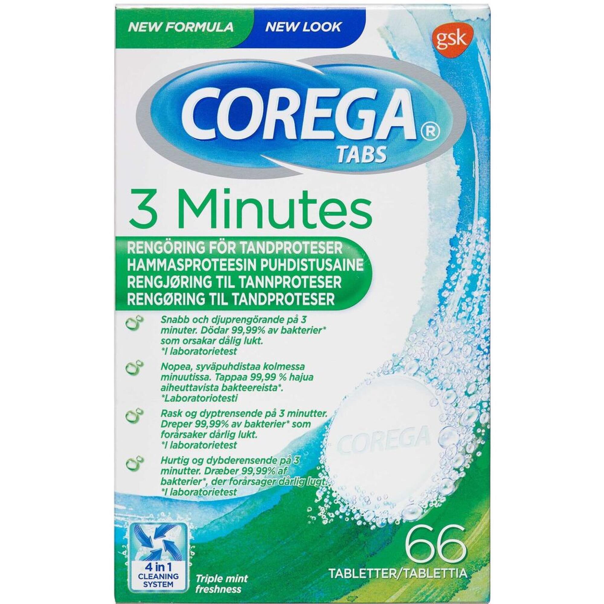 - 66 stk. Corega Tabs 3 Minutes.