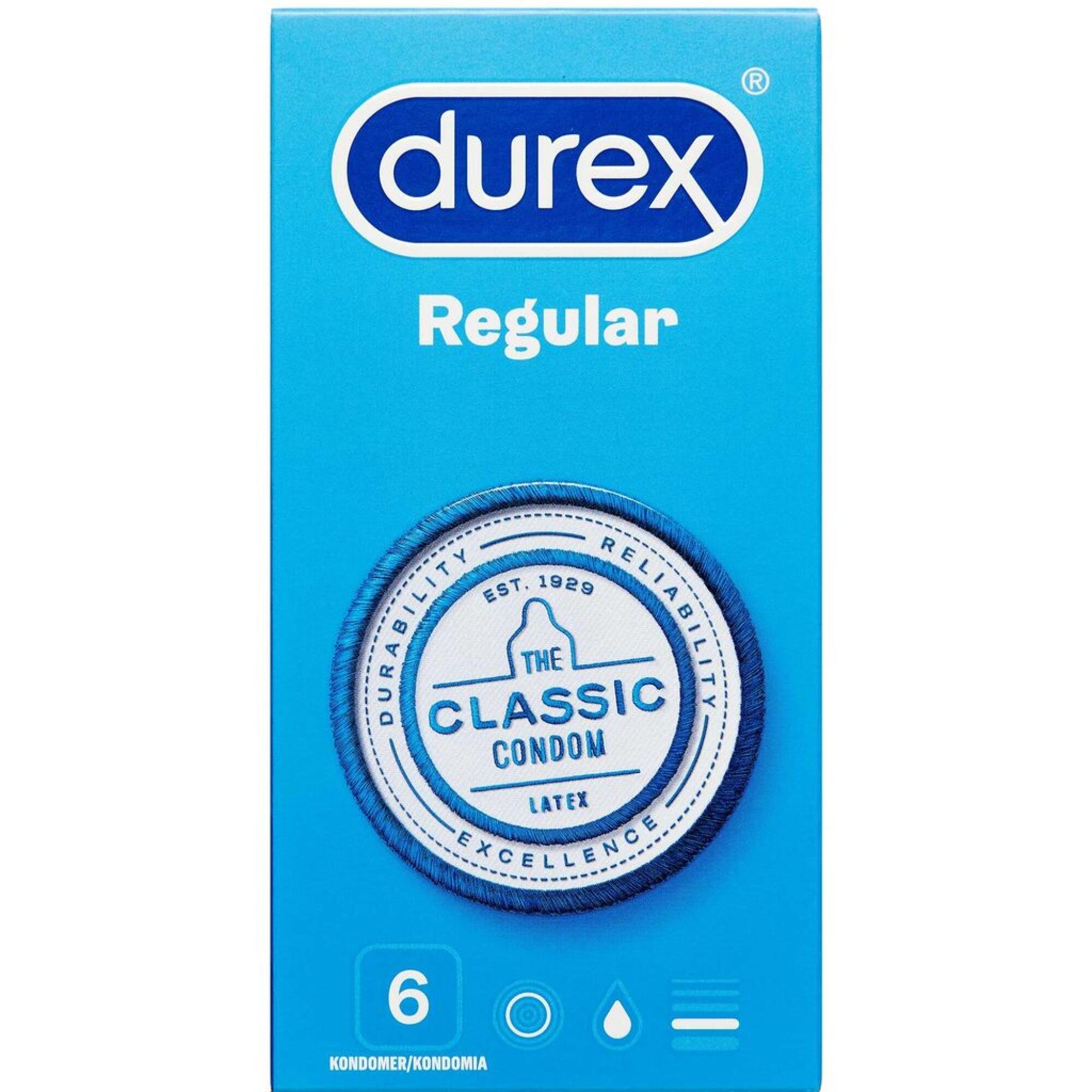 - 6 stk. Durex Regular Kondomer.
