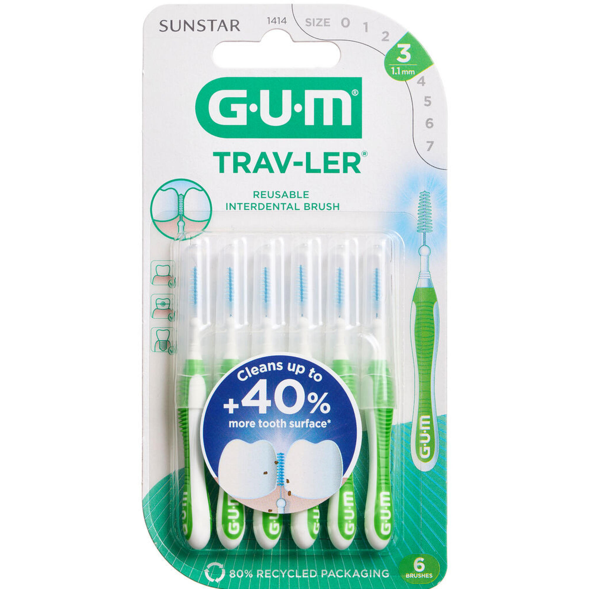 - 6 stk. Gum Travler Mellemrumsbørste Nr. 1414 1,1 mm.