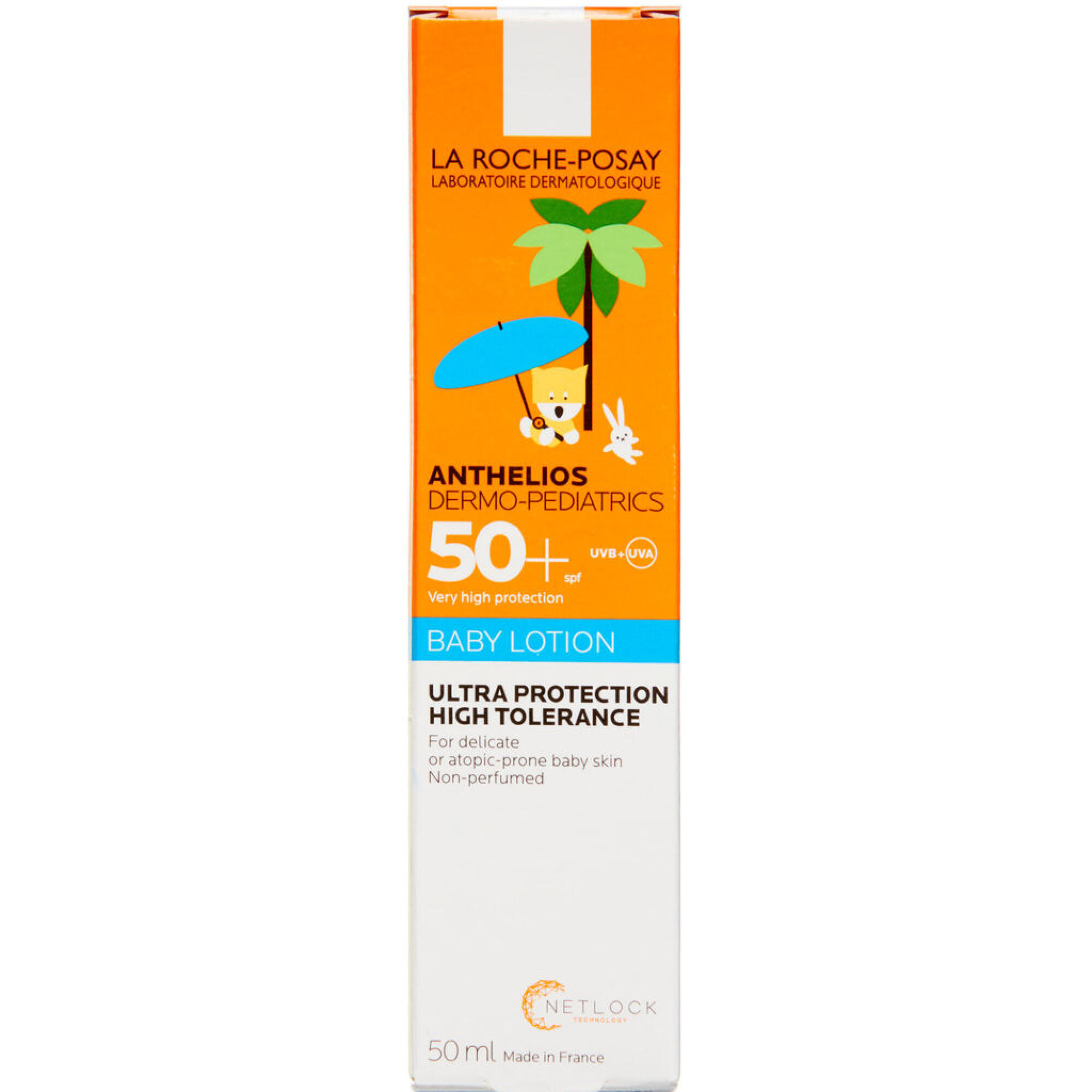 La Roche-Posay Anthelios Baby Sunlotion SPF50+ er en lotion, til babyer fra 6 mdr., med en meget høj beskyttelse mod UVA-stråler (højere end europæiske anbefalinger), komfort og tolerance. Solcremen er fugtgivende, blødgørende og har en cremet konsistens.