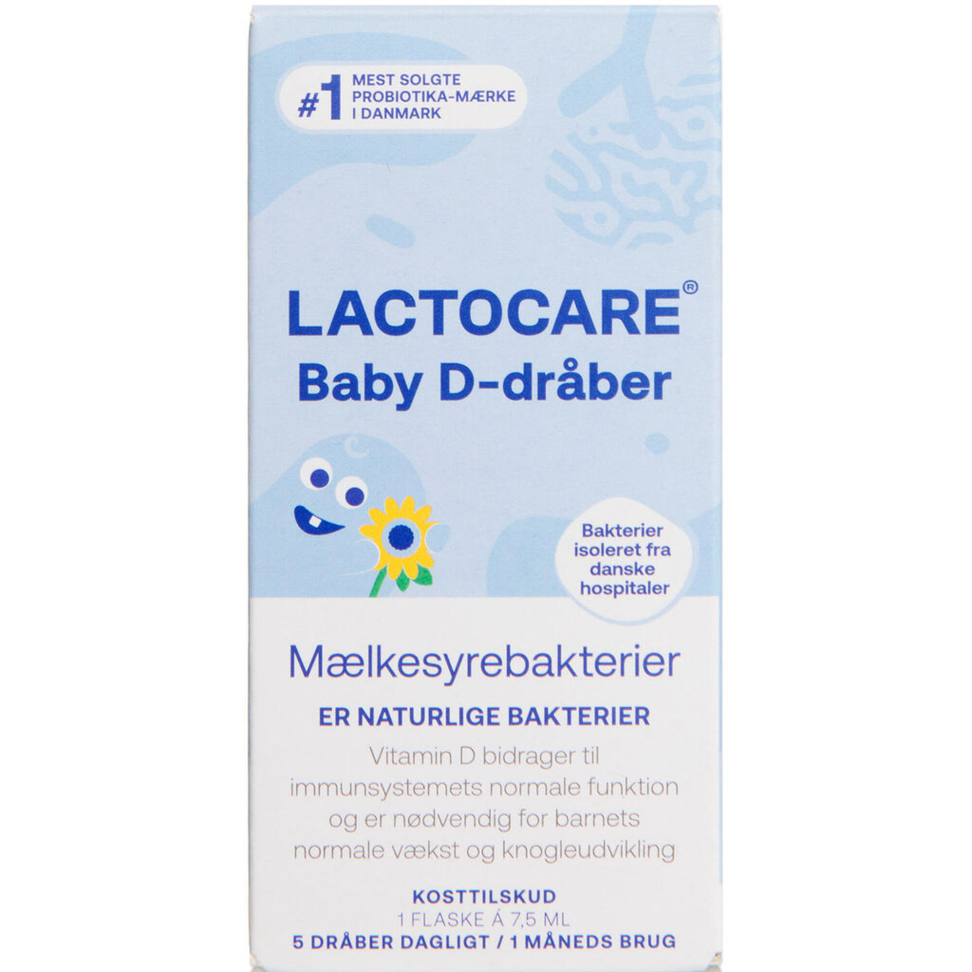 Lactocare Baby er et kosttilskud med mælkesyrebakterier og Vitamin D3, der kan indtages af babyer fra 2 uger og op til 4 år.