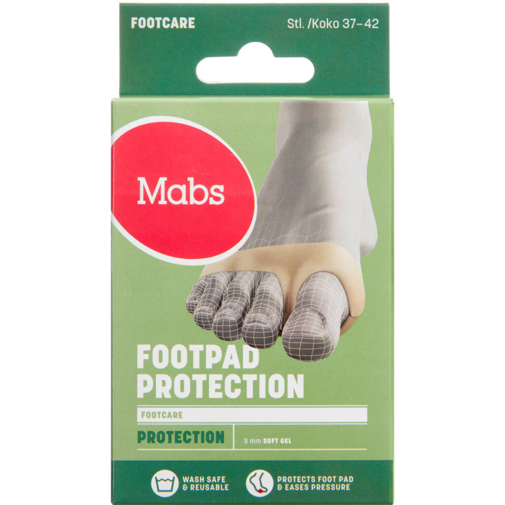 Mabs Fodpleje er beskyttende og plejende produkter mod almindelige fodproblemer såsom hælspore, knyster, hallux valgus, hammertå, hård hud og ligtorne. Kan bruges forebyggende, lindrende og når skaden er sket.