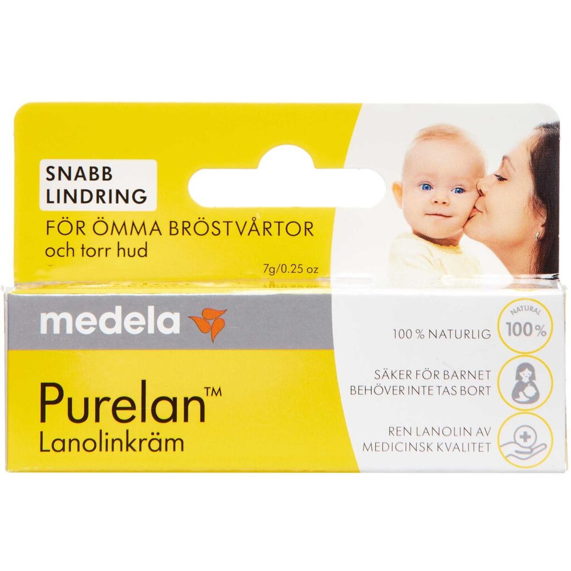 Purelan Lanolincreme er til ømme og revnede brystvorter under graviditet og amning. Den kan også anvendes på sprukne læber, såvel som på tør og følsom hud hos både børn og voksne.