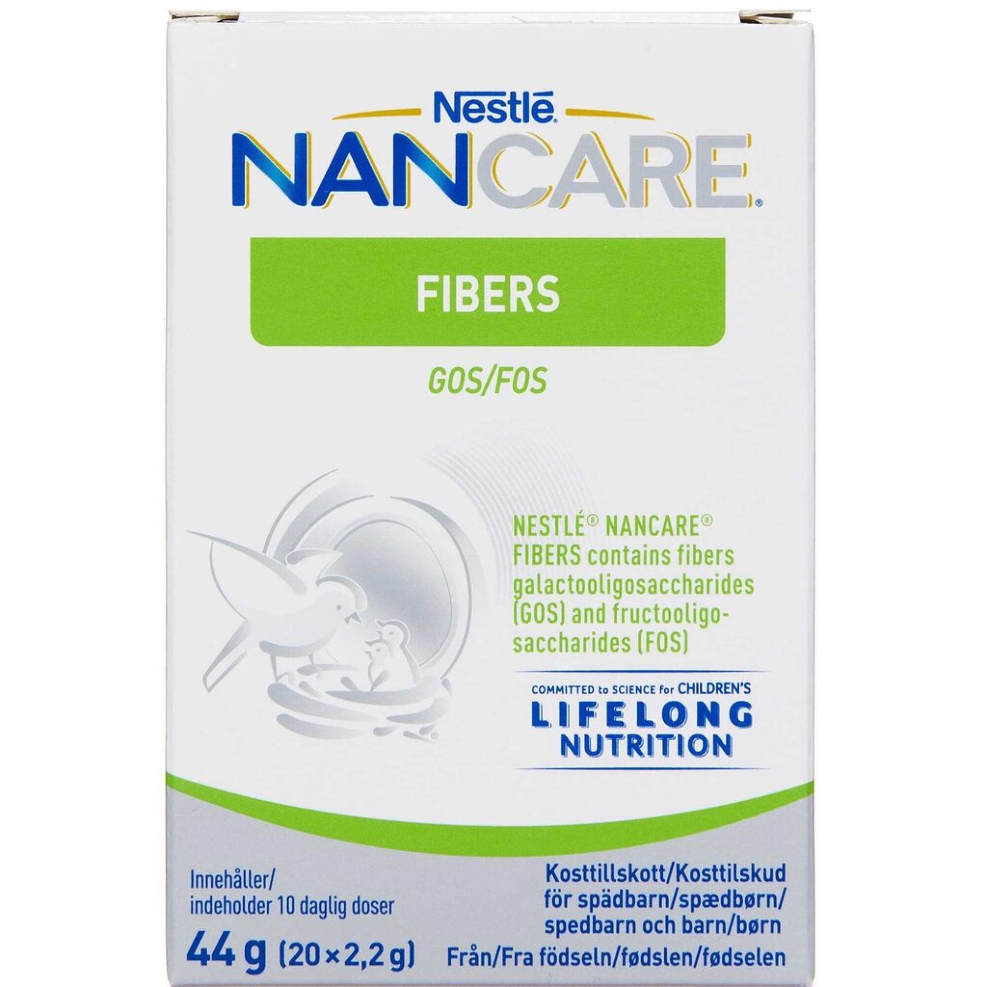 Nancare Fibers GOS/FOS pulver er et kosttilskud til spæd- og småbørn. Indeholder fiber galactooligosaccharider (GOS) og fructooligosaccharider (FOS) som supplement til barnets kost, hvis nødvendigt.