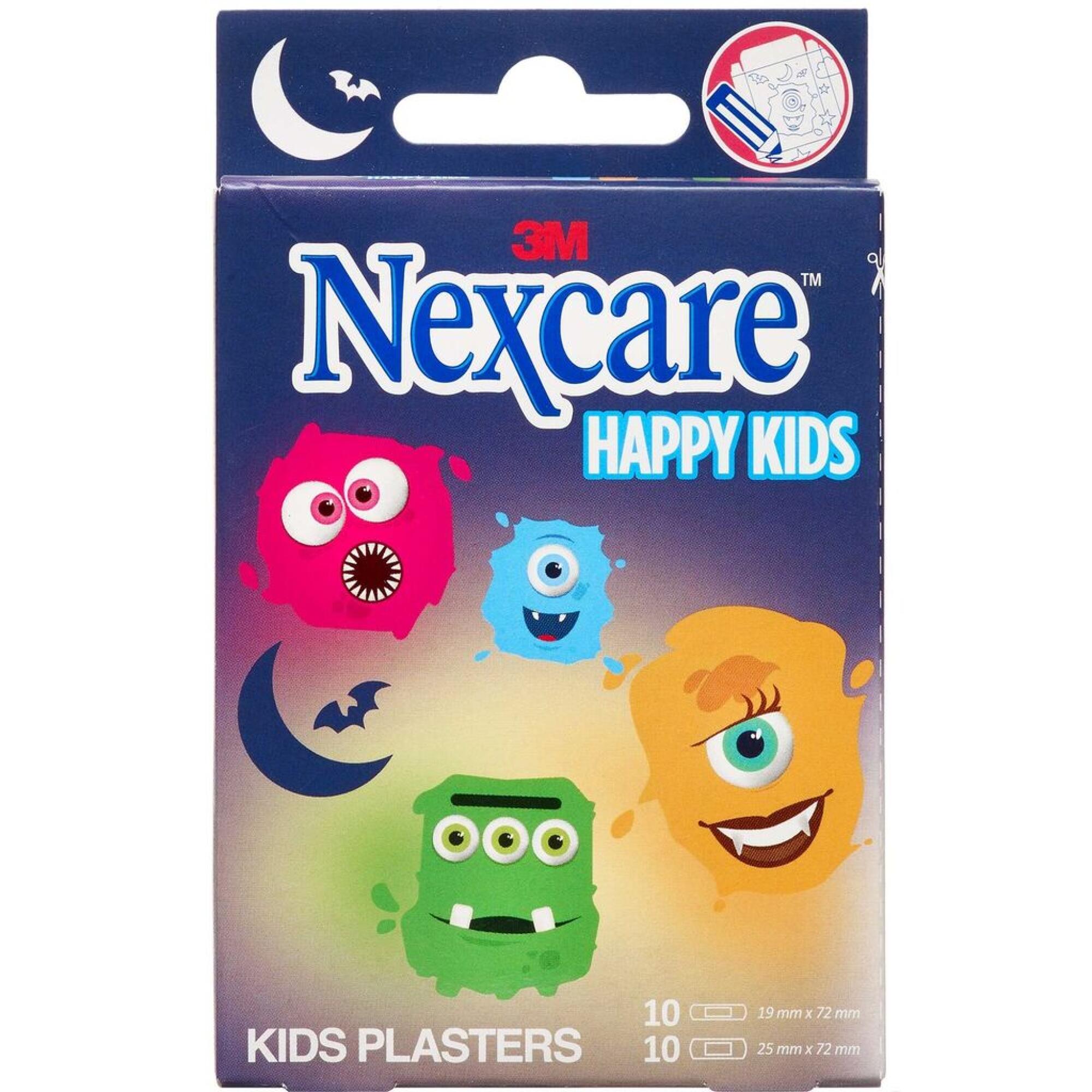 - 10 stk. Nexcare Happy Kids Monsters à 19 mm x 72 mm.