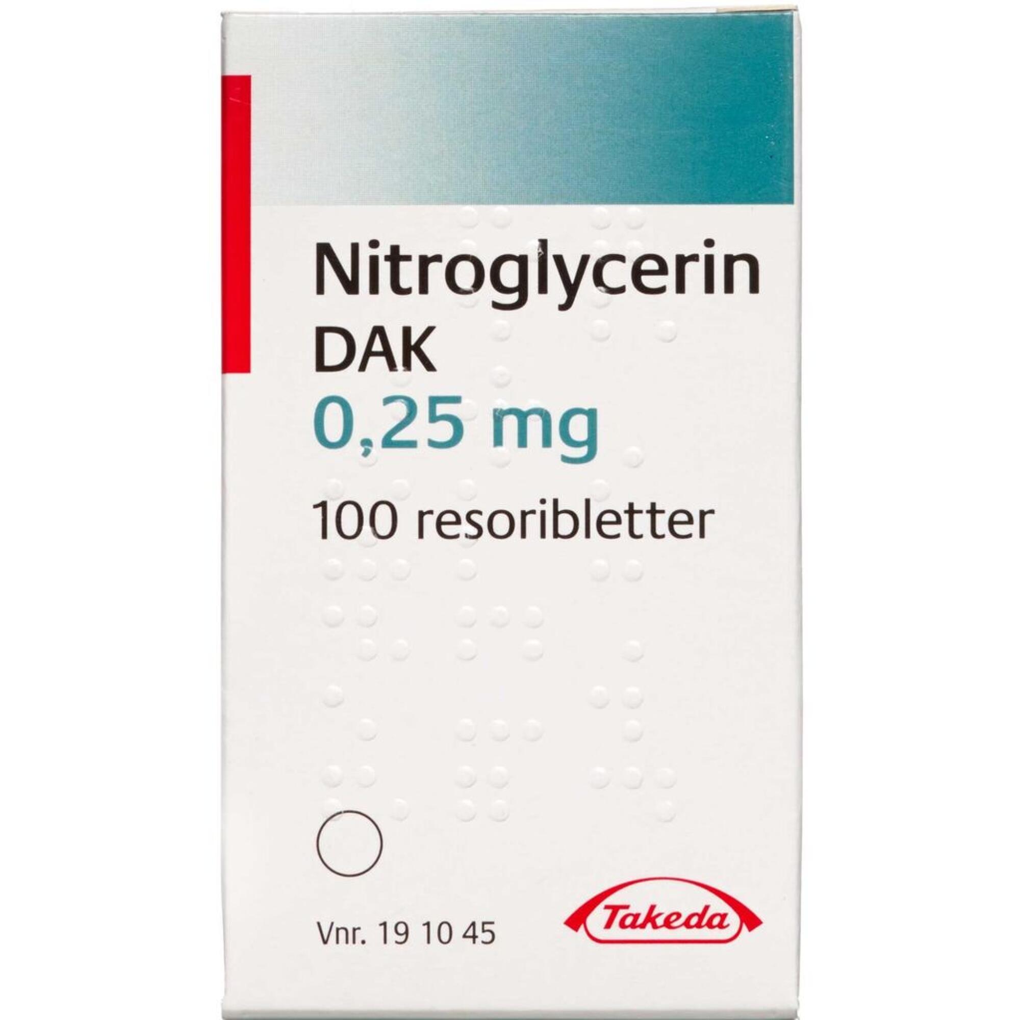 Køb NITROGLYC. RESORI.SUBL.0,25 MG online på apotekeren.dk og få varen tilsendt direkte til dig.