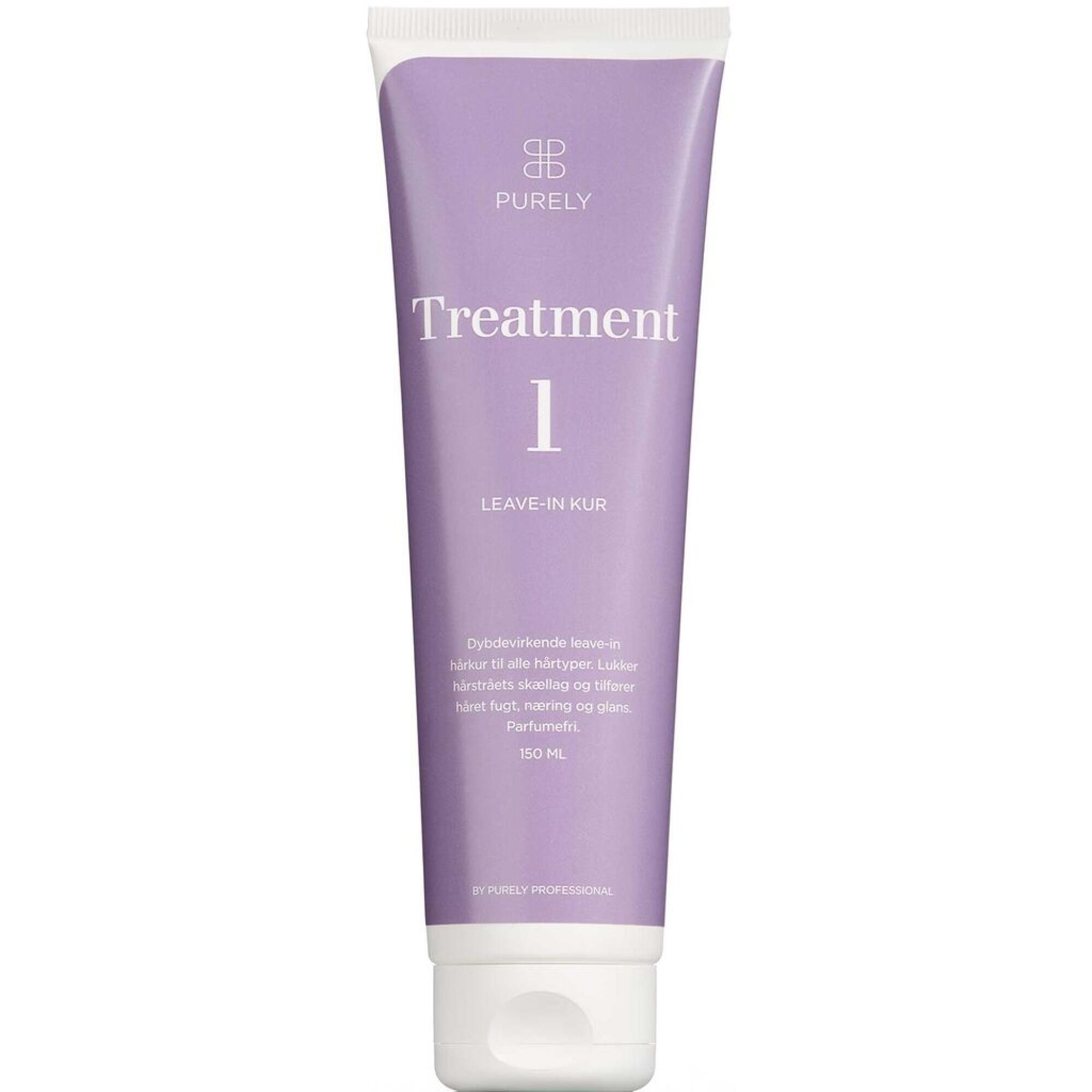 Purely Professional treatment 1 er en dybdevirkende leave-in behandling til mellemlangt og langt hår. Treatment 1 genopbygger hårets skællag ved hjælp af fedtstoffet 18 MEA, der binder hårets skællag sammen. Produktet indeholder desuden kokosolie og hvedeprotein, der plejer og genopbygger håret.