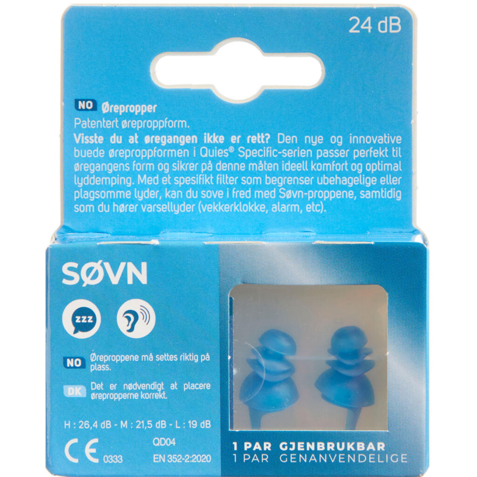 Specific Søvn ørepropperne filtrerer støj på op til 24dB og er genanvendelig og vaskbare.