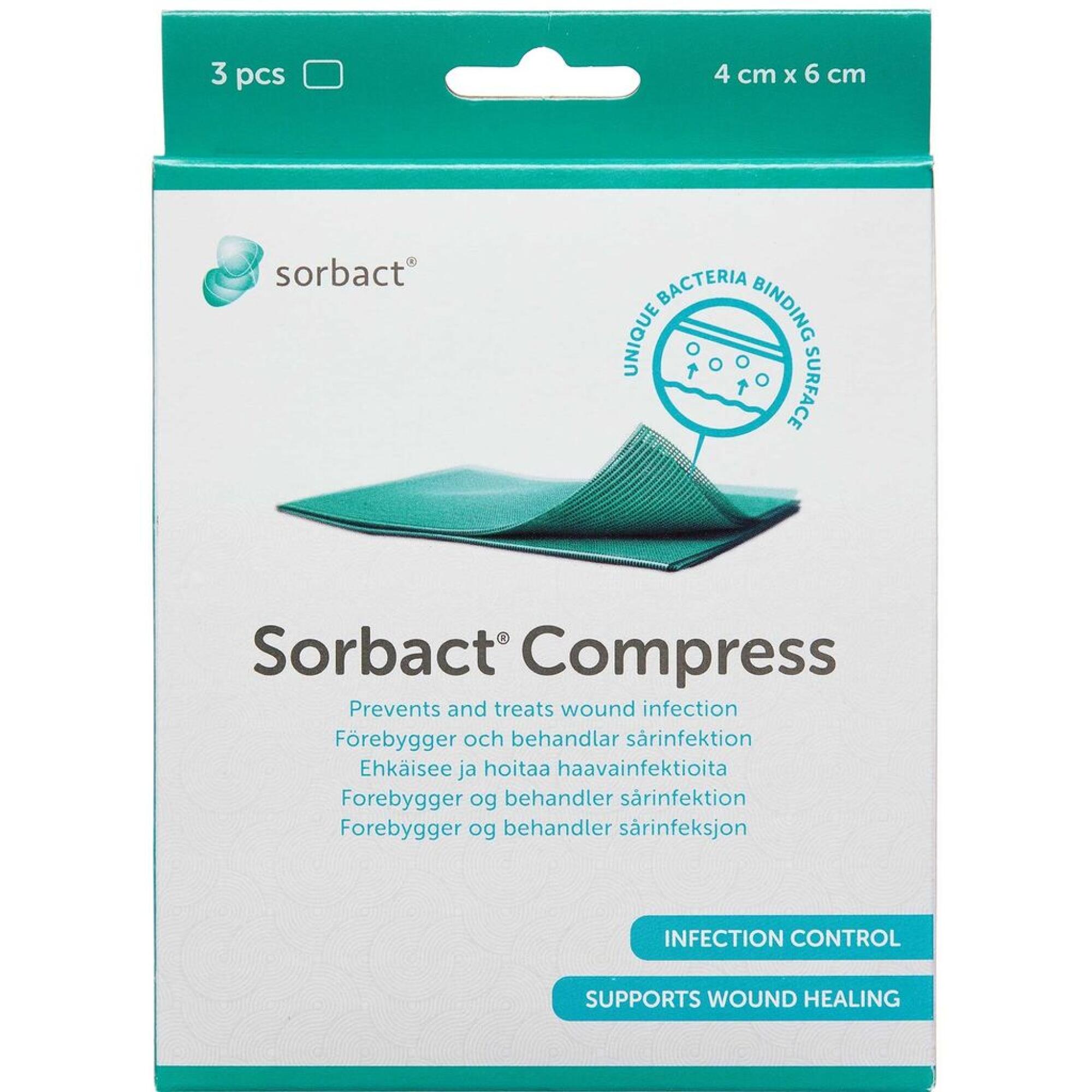 - 3 stk. Sorbact Compress 4 x 6 cm.