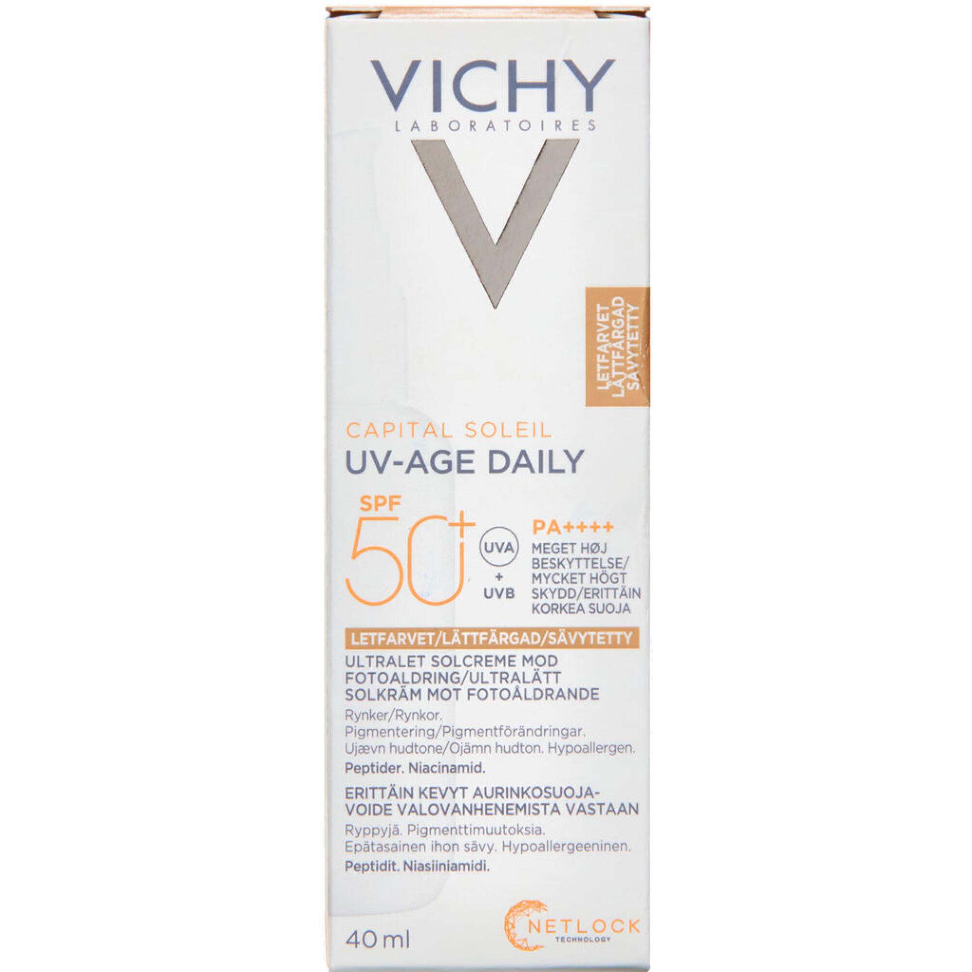 Køb Vichy Capital Soleil UV-Age Daily Pigment Light SPF50+ 40 ml online på apotekeren.dk og få varen tilsendt direkte til dig.