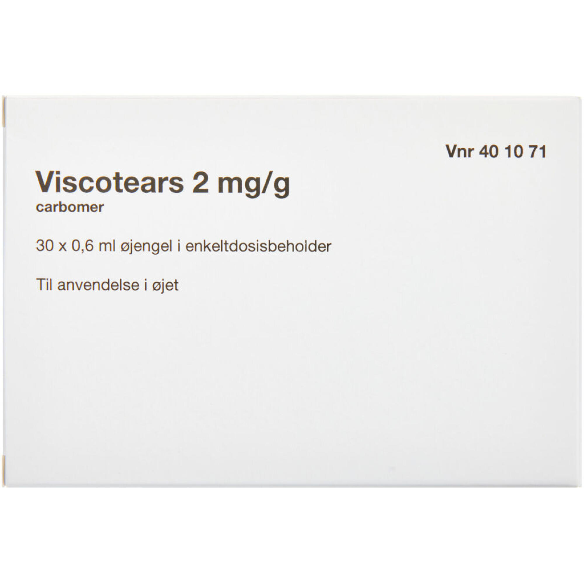 Leveringstiden på VISCOTEARS ØJENGEL 2 MG/G er kun 2-3 hverdage.