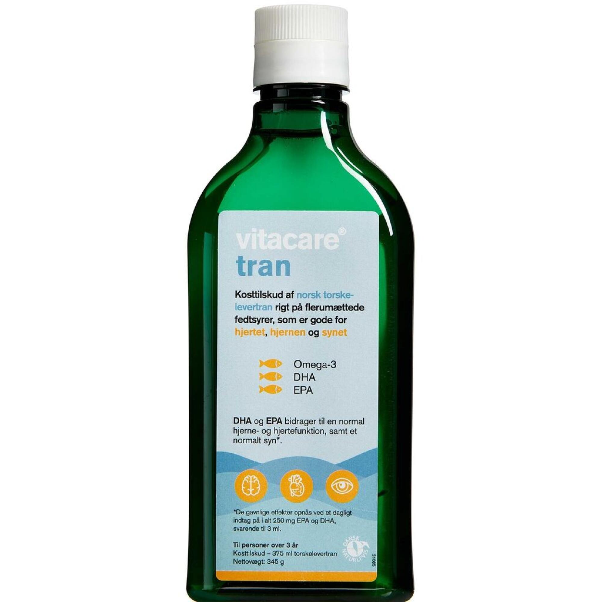 Vitacare Levertran er et kosttilskud af norsk torskelevertran rigt på flerumættede fedtsyrer, som er gode for hjertet, hjernen og synet.
