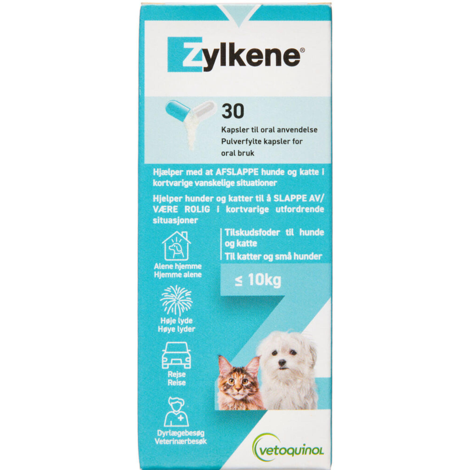 Zylkene indeholder alfa-casozepin fremstillet af kasein fra komælk, som er velegnet til hunde og katte, som er urolige og utrygge fx., når de skal være alene hjemme i forbindelse med nytår, transport, flytning m.m